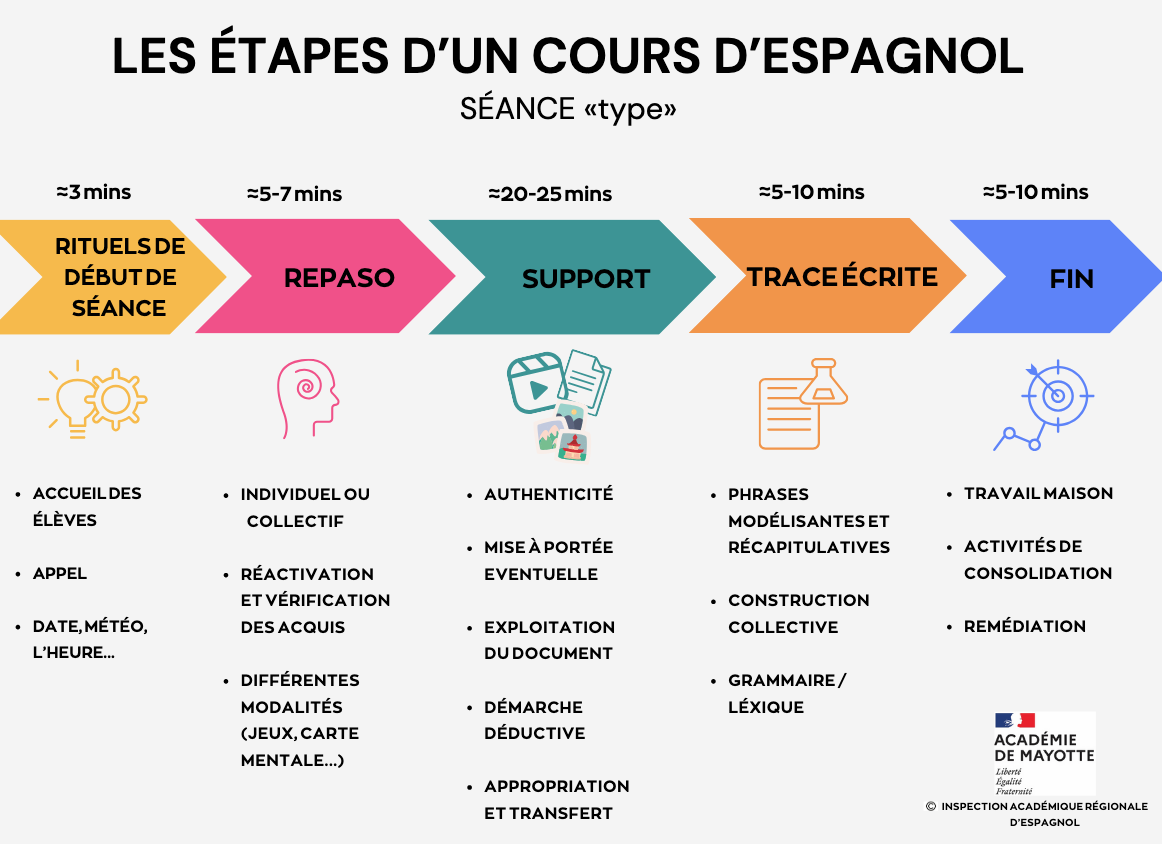 Mesdames, Messieurs, Cher(e)s collègues, L’inspection académique d’espagnol vous partage le document les étapes d’un cours d’espagnol. Dans une séance, il est important d’avoir des étapes claires et bien structurées. C’est pourquoi ce (…)